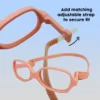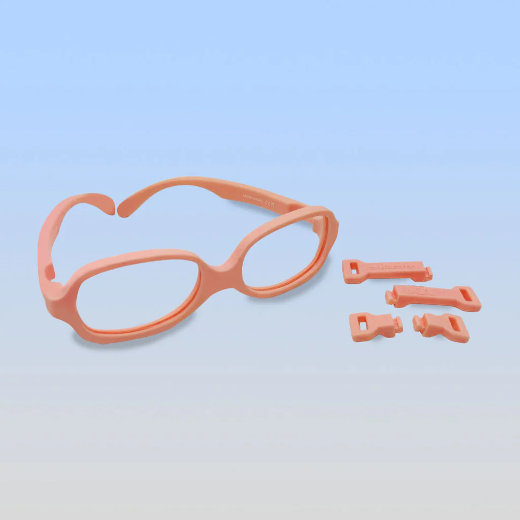 Adorable peach-colored baby sunglasses, combining fashion and UV protection.