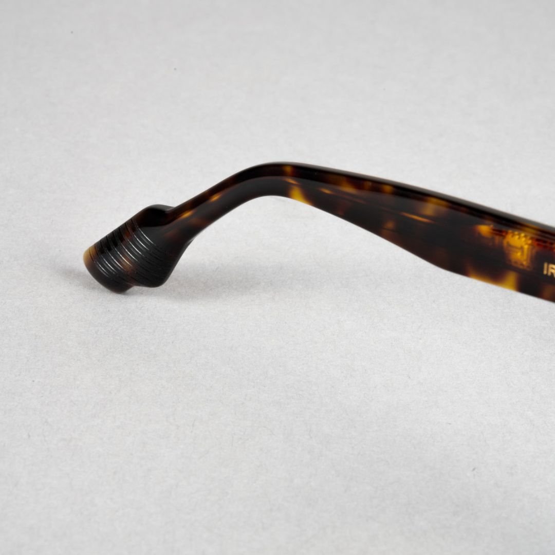 The IRO66 model from the Ytro collection features a Pantos-style optical frame with acetate front and temples. Its assembly highlights the density and reflections of the material. Available in Havana and Gris Cristal Brillant, this pair of glasses embodies elegance and boldness.